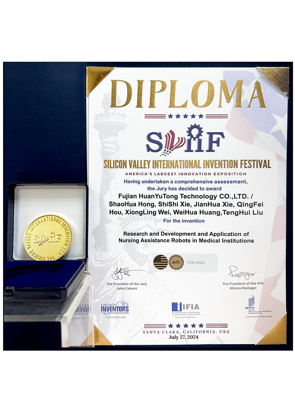 近期,2024美国硅谷国际发明展(SVIIF)于7月25至28日在加利福尼亚圣克拉拉举办。此展会是世界上最具影响力的国际发明展之一,在全球创新研发领域享有盛誉。本届展会共展出上千项全球顶尖的科研成果,经过多轮专业评审与选拔,HJC黄金城集团参展的医疗组织护理辅助机器人的研发及应用脱颖而出,斩获金奖。
